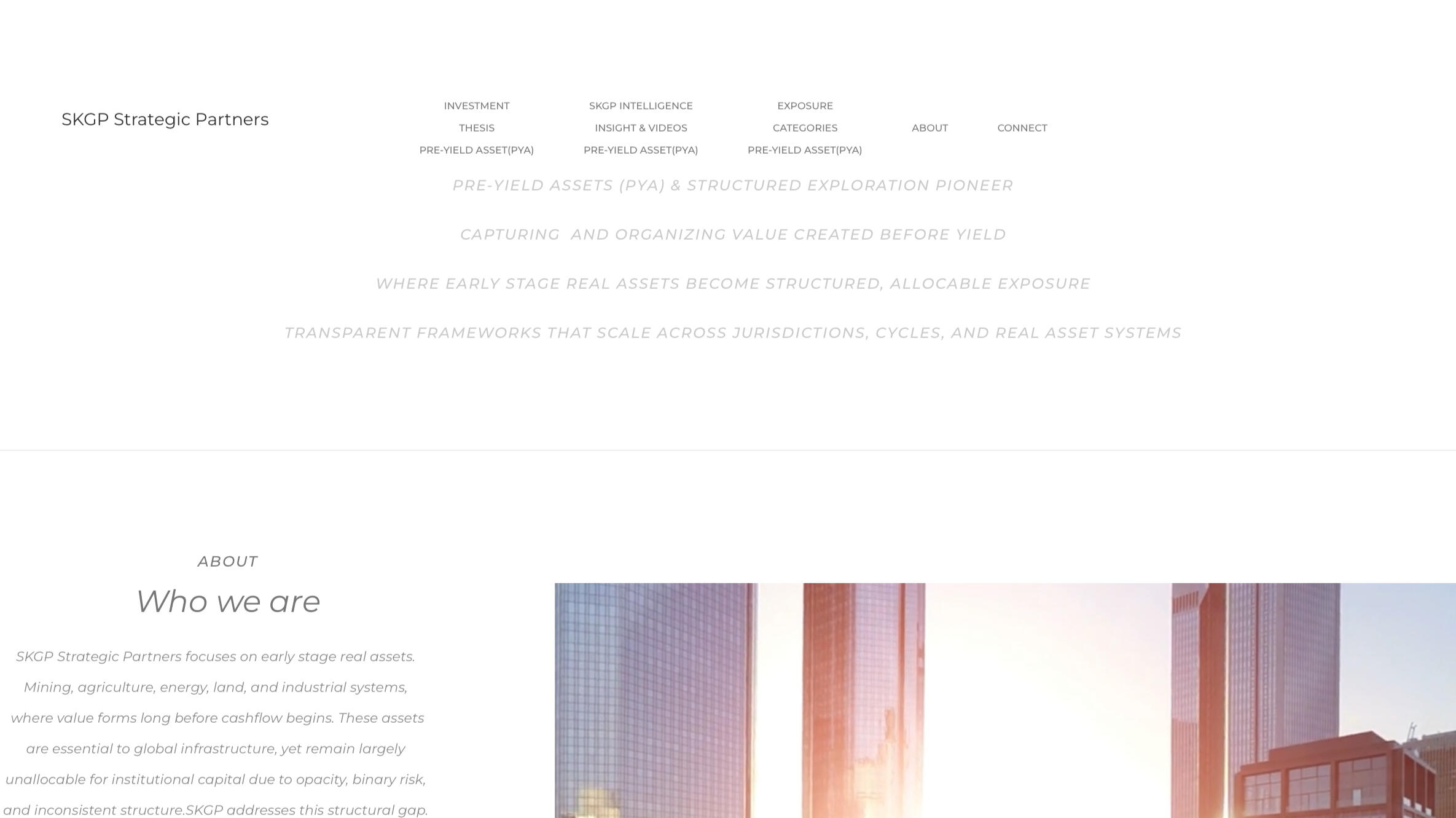 SKGP Research develops analytical and research infrastructure that improves how uncertainty is measured, documented, and reduced in early stage real asset systems. The work directly supports SKGP Strategic Partners by strengthening decision quality, risk discipline, and governance in pre-yield assets across mining, agriculture, energy, land, and industrial systems. Alongside this role, SKGP Research maintains an independent research mandate focused on improving information quality, probability based analysis, and institutional legibility in complex, path dependent real asset environments.SKGPStrategicPartners.com